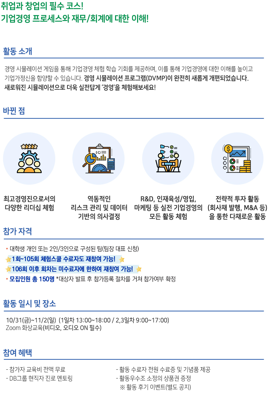 DB 대학생 기업경영 체험스쿨 운영사무국 / 02-2233-4018 / 경기도 광주시 도척면 고녹길66번길 11-73 사업자등록번호 : 201-86-21825